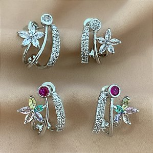 BRINCO ARGOLA TRÊS FIOS BORBOLETAS ZIRCÔNIAS DOURADO BIJU