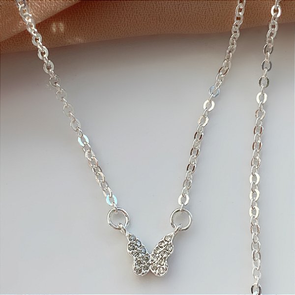 COLAR BORBOLETA ZIRCÔNIAS MINI FOLHEADO A PRATA⭐️