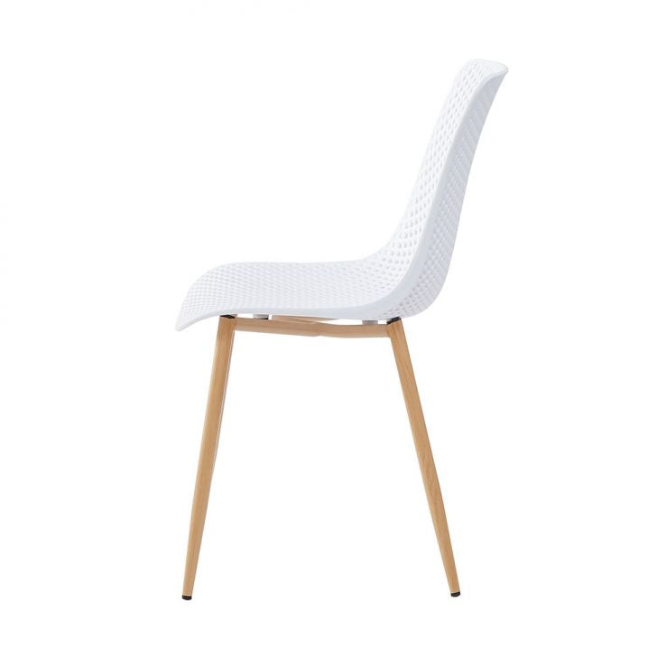 Assento e encosto em polipropileno, pernas em metal com acabamento em pintura epóxi.
