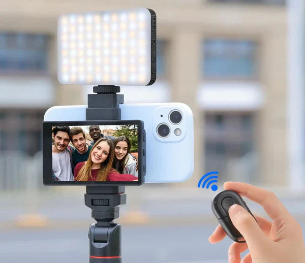 A liberdade de capturar a foto perfeita está ao seu alcance com o controle remoto Bluetooth, que tem um alcance de até 10 metros. Ele se conecta perfeitamente ao seu smartphone, garantindo uma conexão estável e sem interrupções. Diga adeus às selfies apressadas e às extensões de braço desconfortáveis, e olá às fotos tiradas com precisão e facilidade!