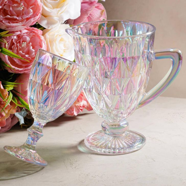 O jogo de 6 taças de vidro 325ml Diamond Rainbow Lyor é uma adição deslumbrante para sua coleção de louças. Com um acabamento metalizado em arco-íris, cada taça apresenta um design de diamante que brilha com cores vibrantes. Com capacidade versátil de 325ml, são ideais para servir diversas bebidas. Feitas de vidro de alta qualidade, essas taças são duráveis e acrescentam um toque de elegância a qualquer mesa. Seja para uma refeição cotidiana ou uma ocasião especial, este conjunto traz um toque de glamour e sofisticação à sua experiência gastronômica.