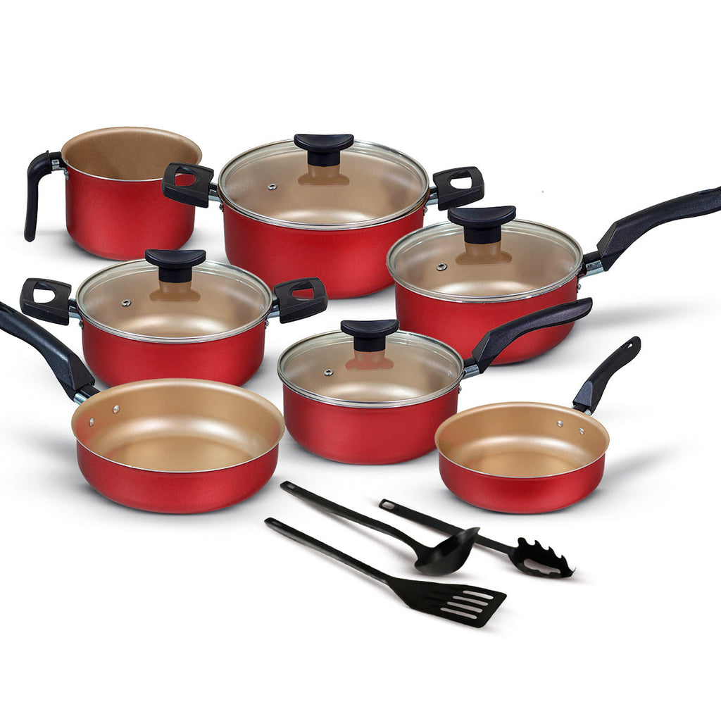 Conjunto Trofa - 10 peças, para deixar sua cozinha mais moderna e prática, com ótimo custo-benefício. Todas as panelas possuem 5 camadas de revestimento antiaderente e espessura de 1,2 mm, proporcionando um cozimento uniforme e durabilidade. Tampas de vidro temperado com saída de vapor permitem visibilidade total durante o preparo das receitas. Pegadores em baquelite antitérmico oferecem segurança e conforto. Limpeza simplificada graças ao revestimento antiaderente de alta qualidade.