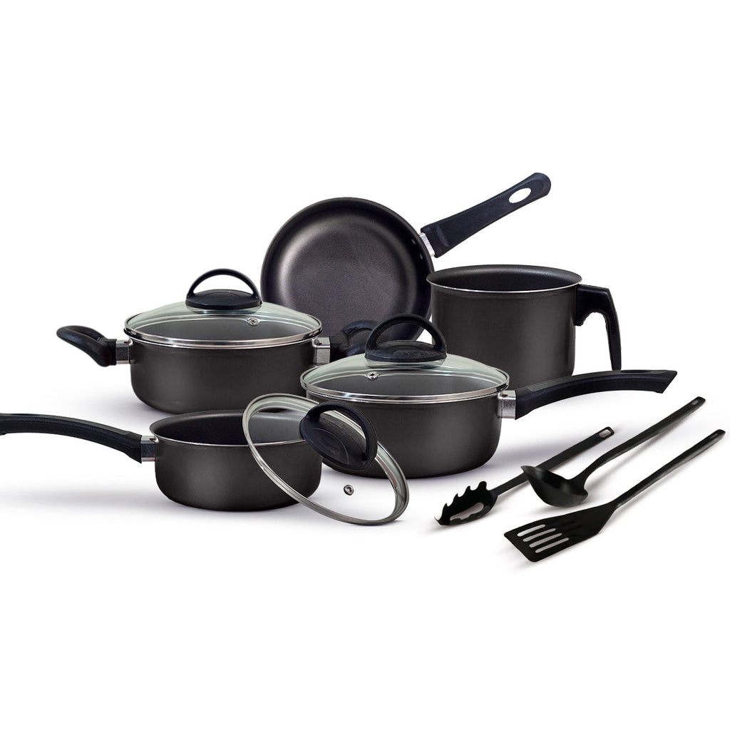 Material: Alumínio com revestimento antiaderente Material das Tampas: Vidro temperado com saída de vapor Material dos Pegadores: Baquelite antitérmico Espessura: 1,2 mm