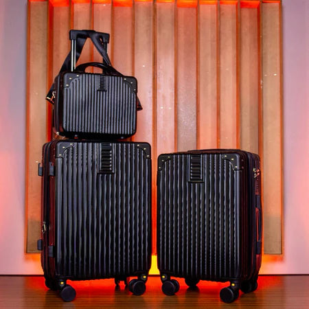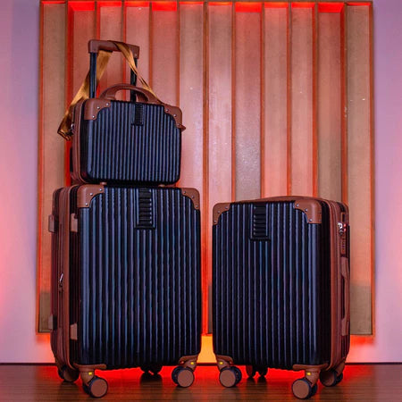 Viaje com conforto e elegância com o Kit América Zivana Couture, composto por 2 malas de bordo premium e 1 frasqueira combinando.