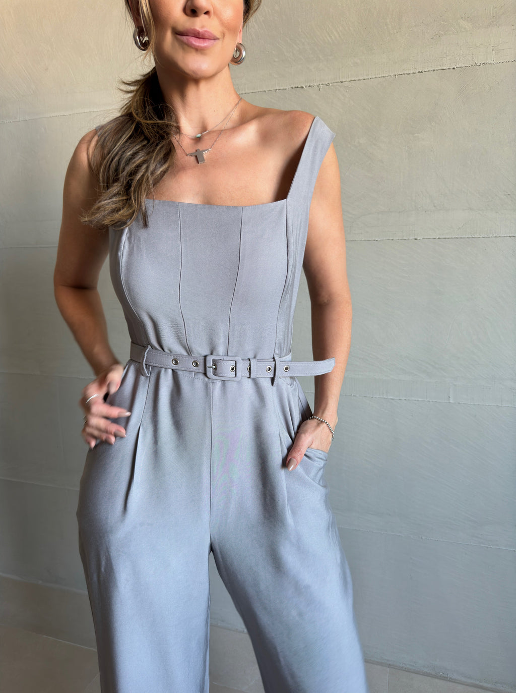 O Macacão Pantalona Alfaiataria une sofisticação e conforto em uma peça única. Com modelagem ampla e elegante, ele é confeccionado em tecido leve de alta qualidade e acompanha uma faixa que destaca a cintura, valorizando o corpo com um caimento impecável. O fechamento por zíper nas costas oferece praticidade e um acabamento refinado. Ideal para ocasiões que pedem elegância com toque moderno.